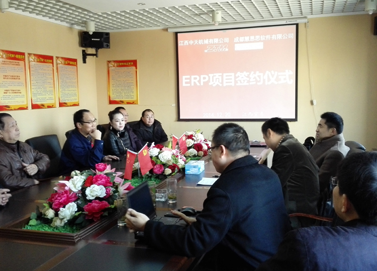 2014年12月20日,江西中天机械有限公司和成都慧恩思软件就ERP项目正式签约。